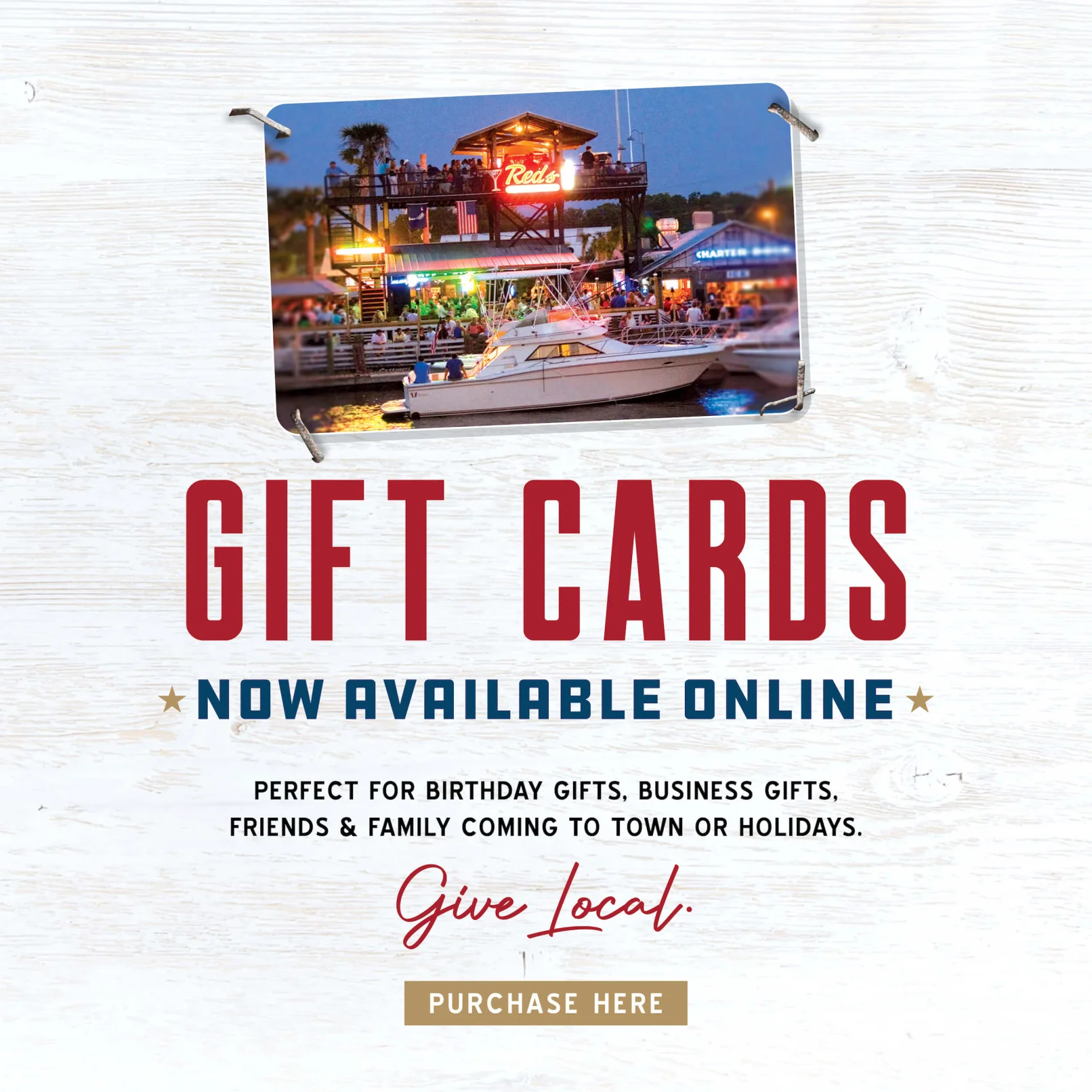 If you’re looking for a friendly spot to enjoy a cold beer & fresh seafood in a laid back setting, you’re going to love Red’s Ice House. Located on historic Shem Creek in Mt. Pleasant, Red’s is the perfect spot for taking in Lowcountry wildlife and scenic Charleston sunsets.